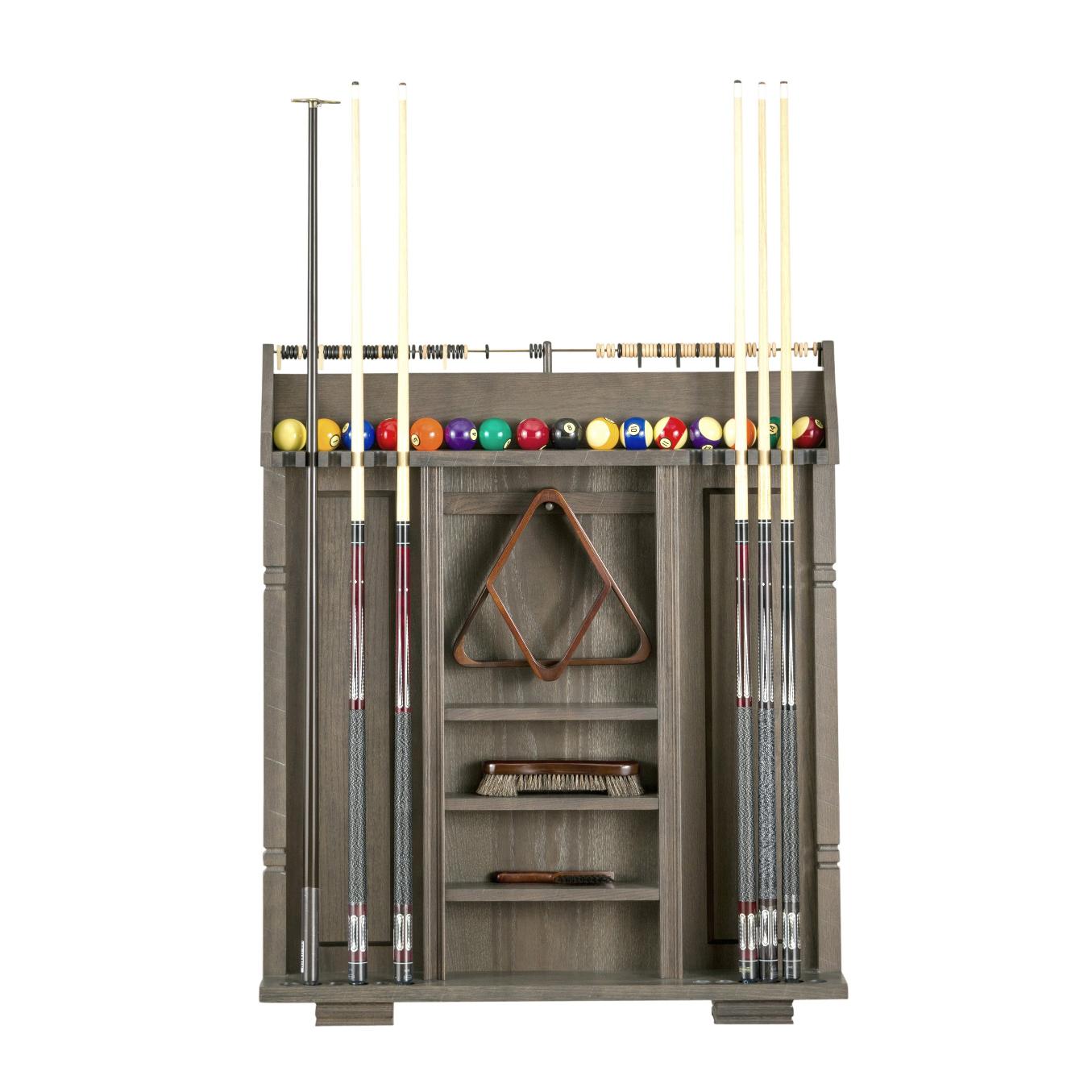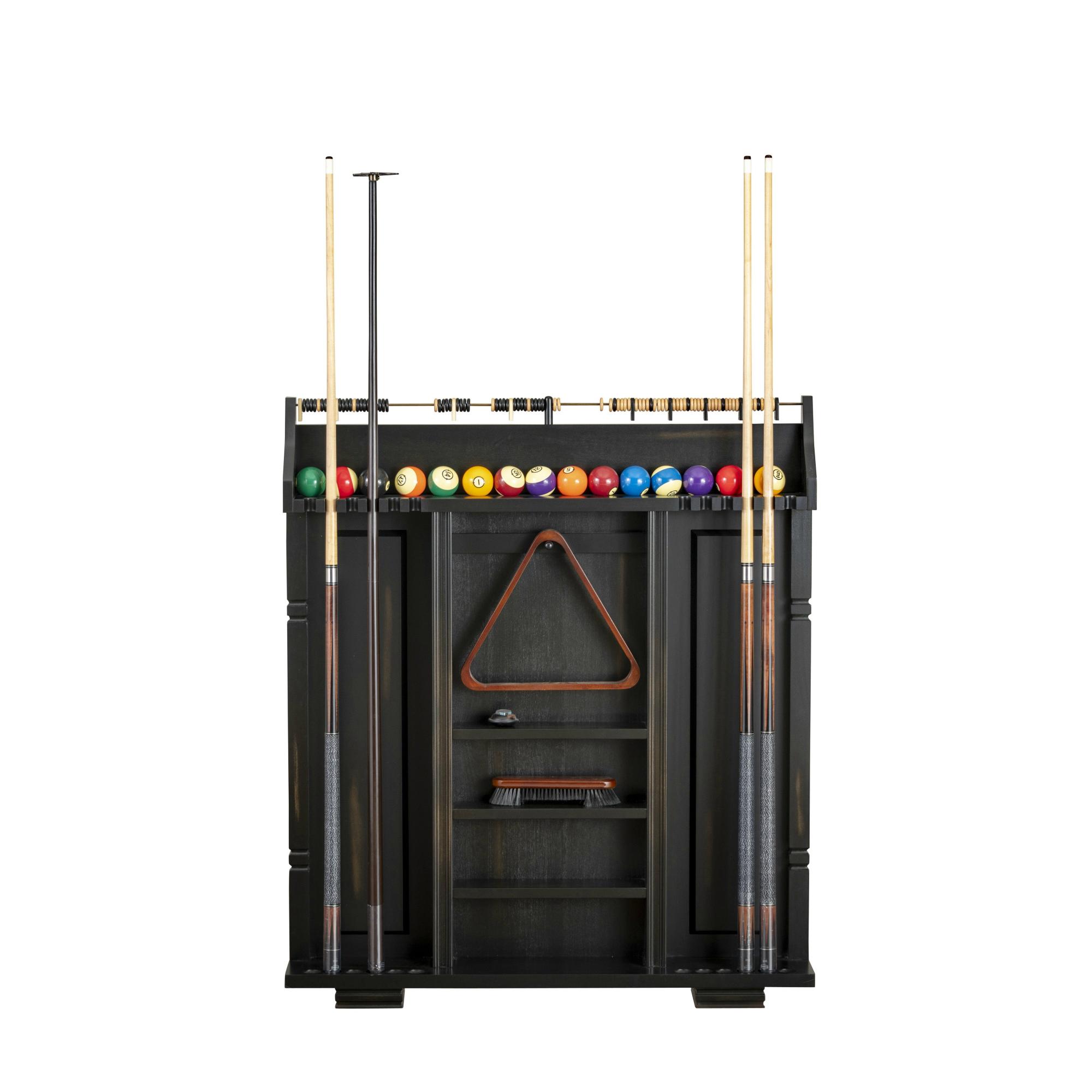 This rack is truly unmatched; ample storage room for cues, balls, racks, and other accessories while also housing a unique scoring system. All of this is combined with a classic and simplistic style that fit any room.
