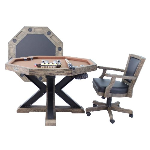 - Black Leather on Card Top: The card/poker table side boasts a touch of luxury with black leather.