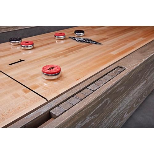 - Natural Grain and Texture Finish: A captivating finish that enhances the natural grain and texture of the shuffleboard table.