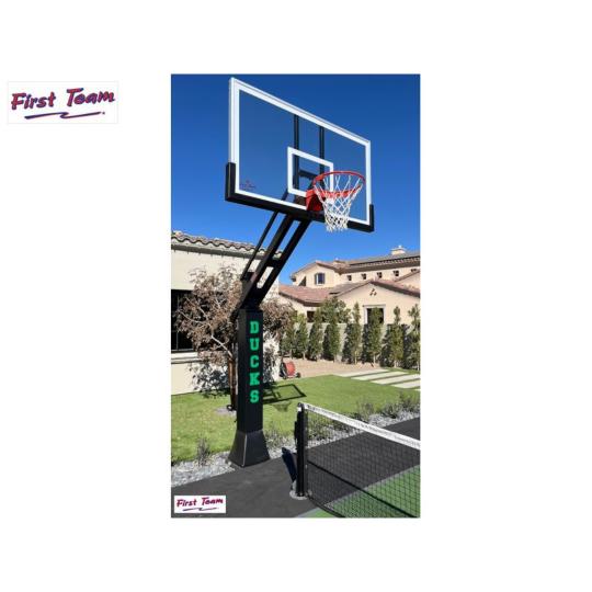 Bring the arena to your backyard with the toughest system in the industry. The First Team Titan is engineered for maximum rigidity, featuring a massive 6″ square steel post that provides the same rock-solid stability found in professional and collegiate facilities.