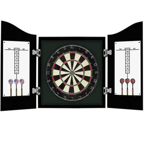 - Add the excitement of darts to any room in your home with this elegant Outlaw Free Standing Dartboard and Cabinet set. This multi-game electronic dartboard is coupled with a CARB certified MDF cabinet finished in a rich cherry melamine with brushed steel hardware. The built-in storage compartment is perfect for keeping all of your game accessory items neatly stored when not in use. But, of course, the real action is up top where an open area showcases a mounted, electronic dartboard. Cabinet can be free standing with base stabilizers or wall mounted. It comes complete with twin dart sets making the Outlaw the ultimate in game room fun! 180-day limited warranty.