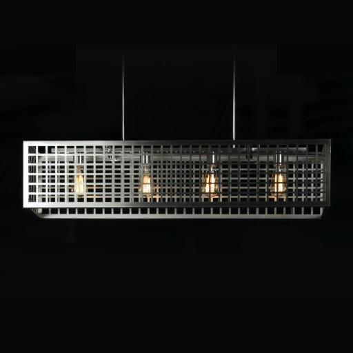 - Introducing HJ Scott’s newest light from the Abbey Transitional Collection. Both feminine and masculine features converge to create an industrial chic chandelier. Brushed chrome rectangular metal caged design with removable textured linen shade gives it a filtered light look.