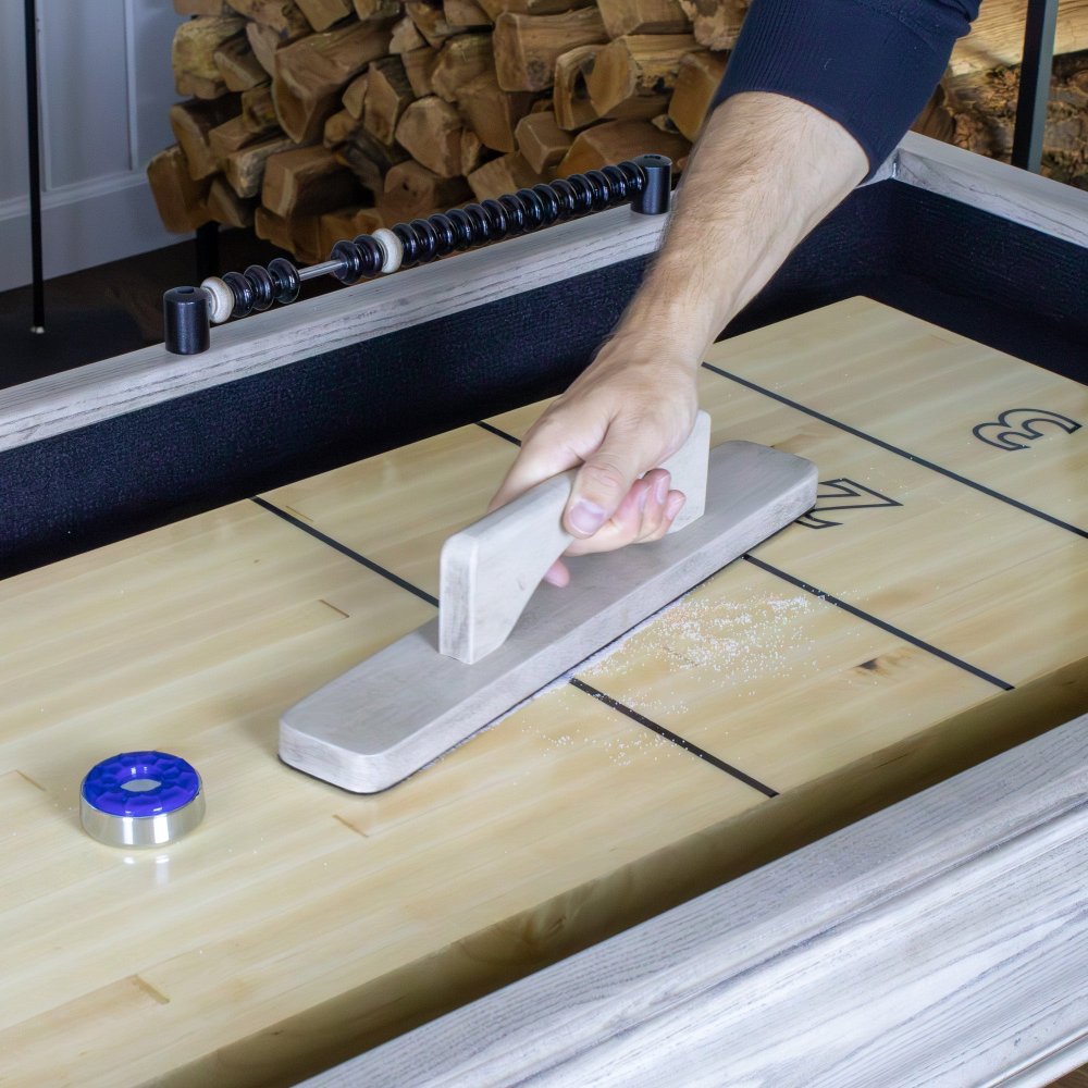 Also Included is One Set of Eight Playing Weights/Pucks, 2 Bottles of Speed Powders, 5 inch Adjustable Leg Levelers, and One Board Wipe.