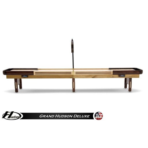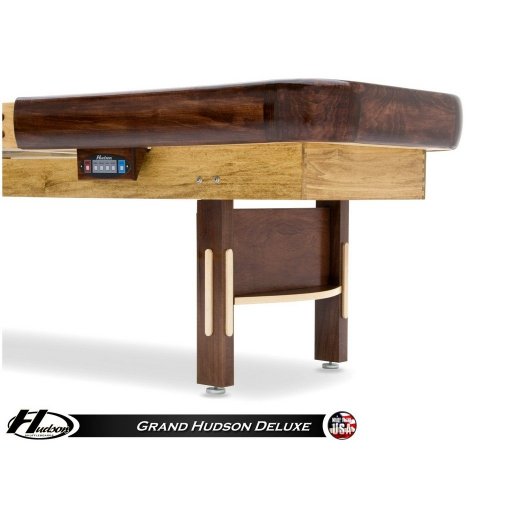 New from Hudson Shuffleboards! The Grand Hudson Deluxe Hybrid Shuffleboard is a beautiful work of master craftsmanship that features a timeless American look and made right here in the USA! The cradle on this Grand Hudson Deluxe Hybrid is constructed entirely of Solid Poplar and Hard-Rock Maple Hardwoods and finished with your choice of stain(s).