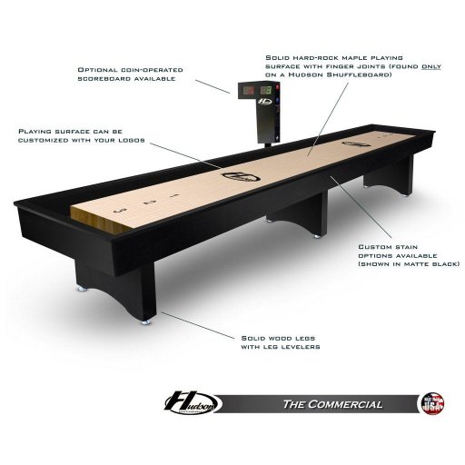Dominator Shuffleboard Table 9′-22′ Lengths with Custom Stain Options by Hudson Shuffleboards