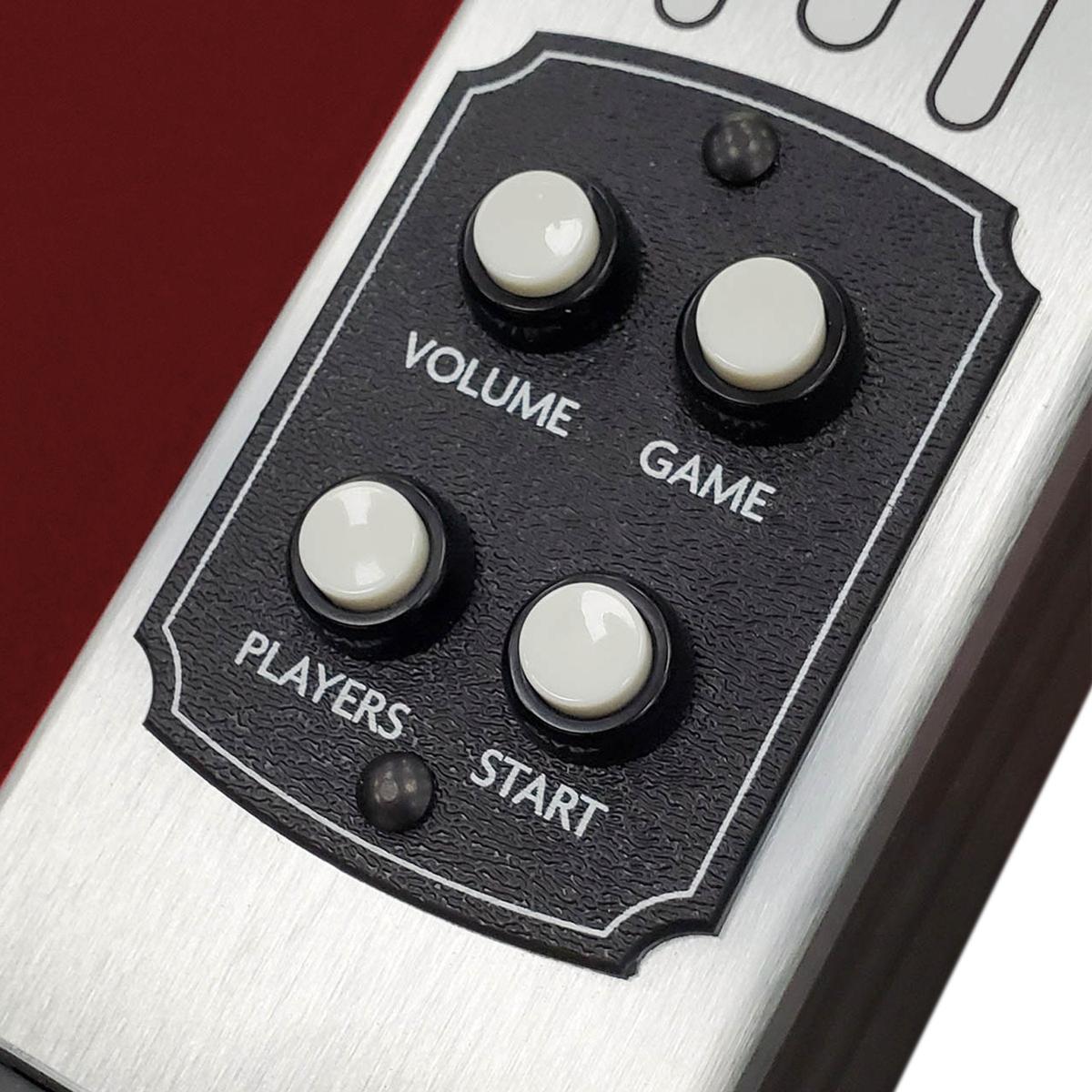 - Hinged play field for easy serviceability