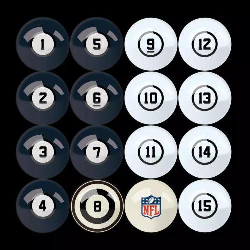 Take the Chicago Bears to the pool table and enjoy a quick game of 8 balls or 9 balls. These balls have large team logos and numbers and really pop! Balls are regulation size and weight and made of a polyester resin that resists chipping and cracking. Time to get you a set!