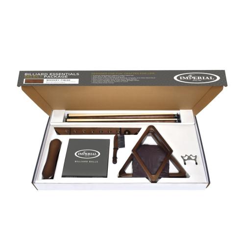 The Imperial Essentials Select package is the most comprehensive of the Imperial accessory kits. It includes the Imperial Select Ball Set, four 2-piece cues, a dust cover, a wall rack, a triangle, a 9-ball rack, a 2-piece bridge stick, a metal bridgehead, an under-rail brush, and a table brush. If that isn’t enough, it all matches with our Black wood finish. This package contains all the accessories needed to take care of your game and your table!