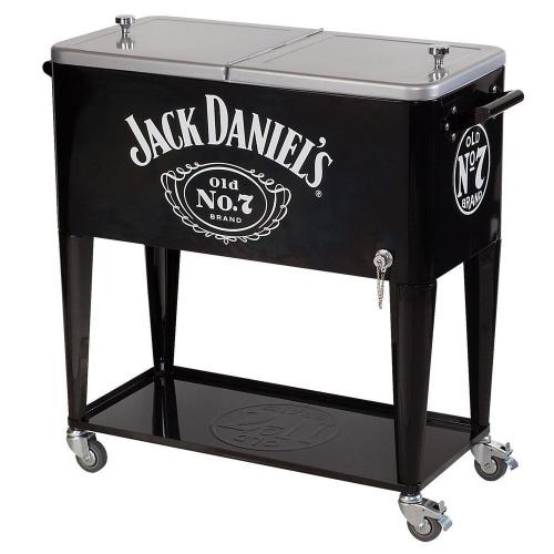 Jack Daniel’s® Rolling Cooler is loaded with fun and ready to go! Sturdy, black powder coat exterior features Jack Daniel’s graphics to fit any decor. Easy-grip handles and wheeled design with two locking casters lets you move the party indoors or outdoors, while the bottle opener and detachable steel bottle cap catcher keep guests close to the action.