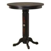 Jack Daniel’s® Wood Pub Table and Stool Set crafted from select hardwood features an exclusive, hand rubbed Tennessee Charcoal finish. Embossed Jack Daniel’s Old No. 7 logo centered on the table top is subtle and stylish. Pedestal base features cast Old No. 7 antique pewter medallions surrounded by decorative carvings and contoured feet. Set comes with JD Wood Bar Stools. Table and chairs also sold individually