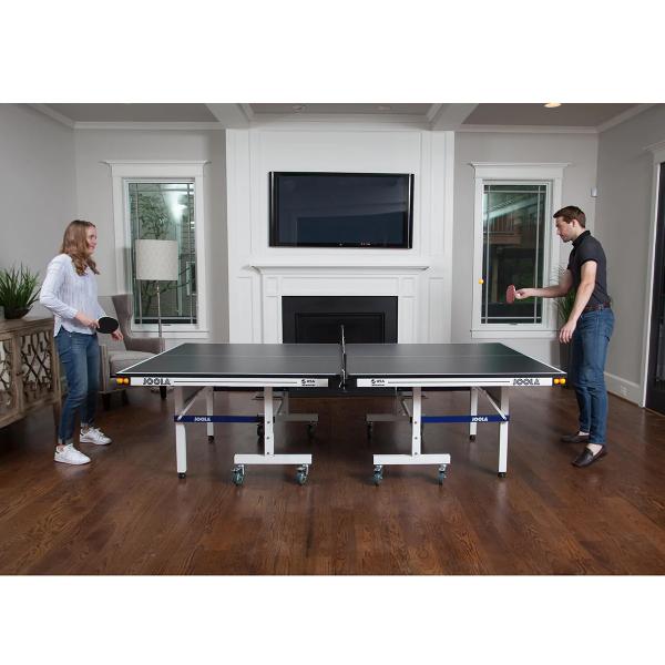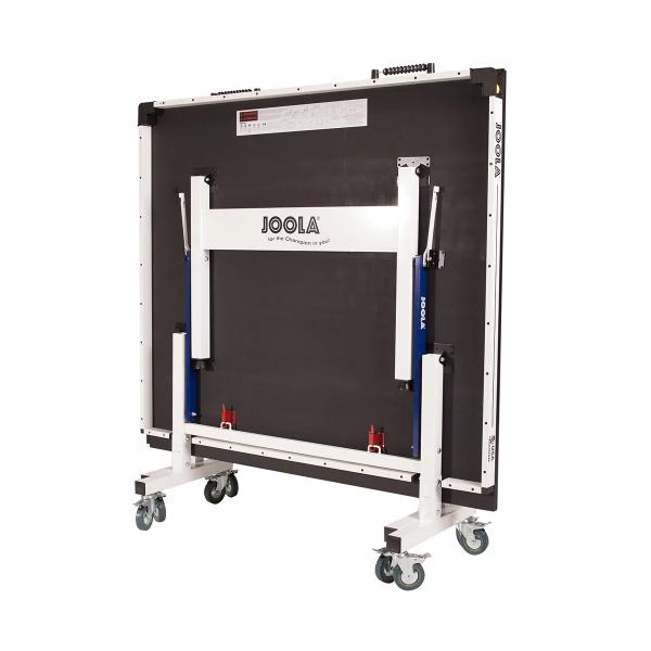 The Joola Drive 1500 has a 15mm charcoal painted MDF surface, which is ideal for recreational use. The table top is supported by a white undercarriage with automated folding legs and four locking casters under each side.