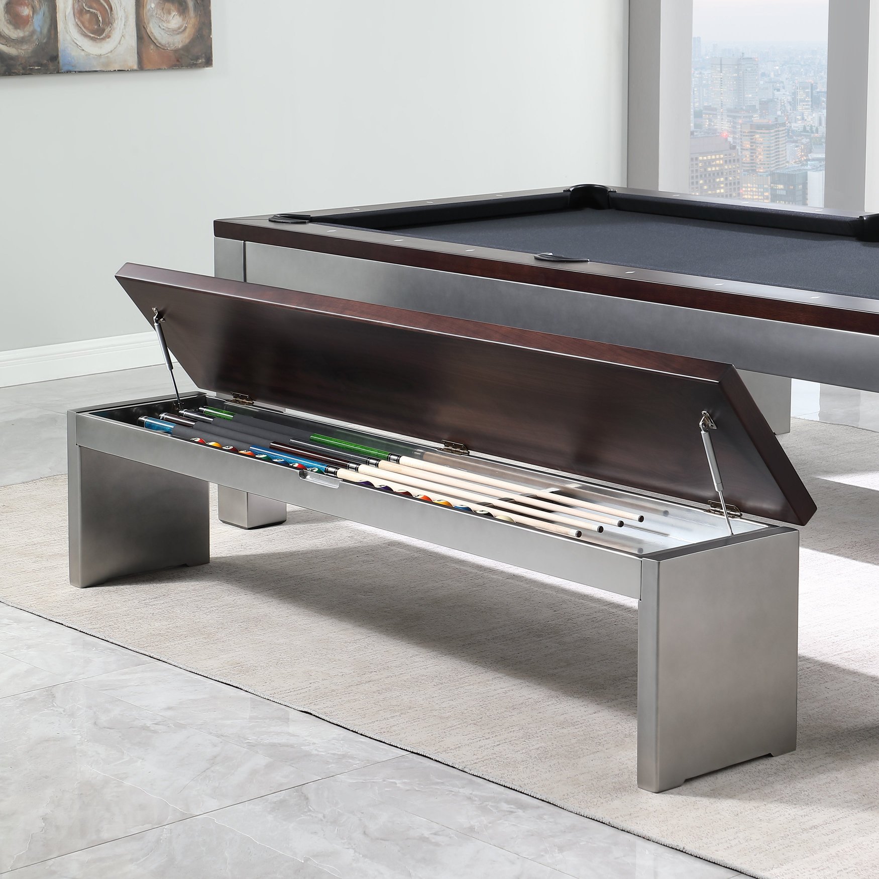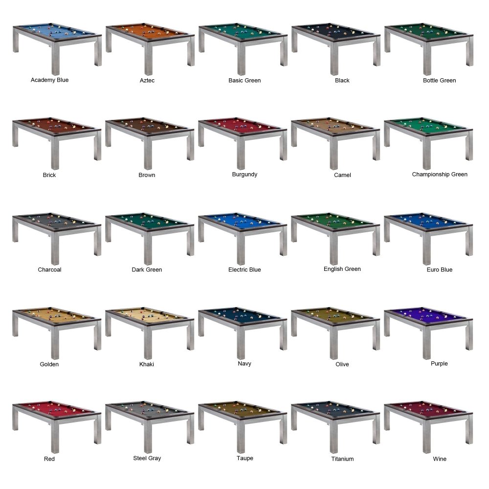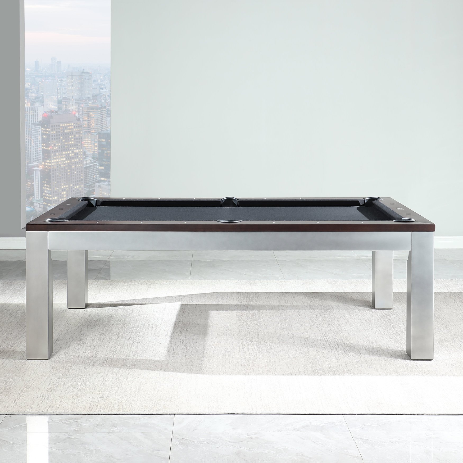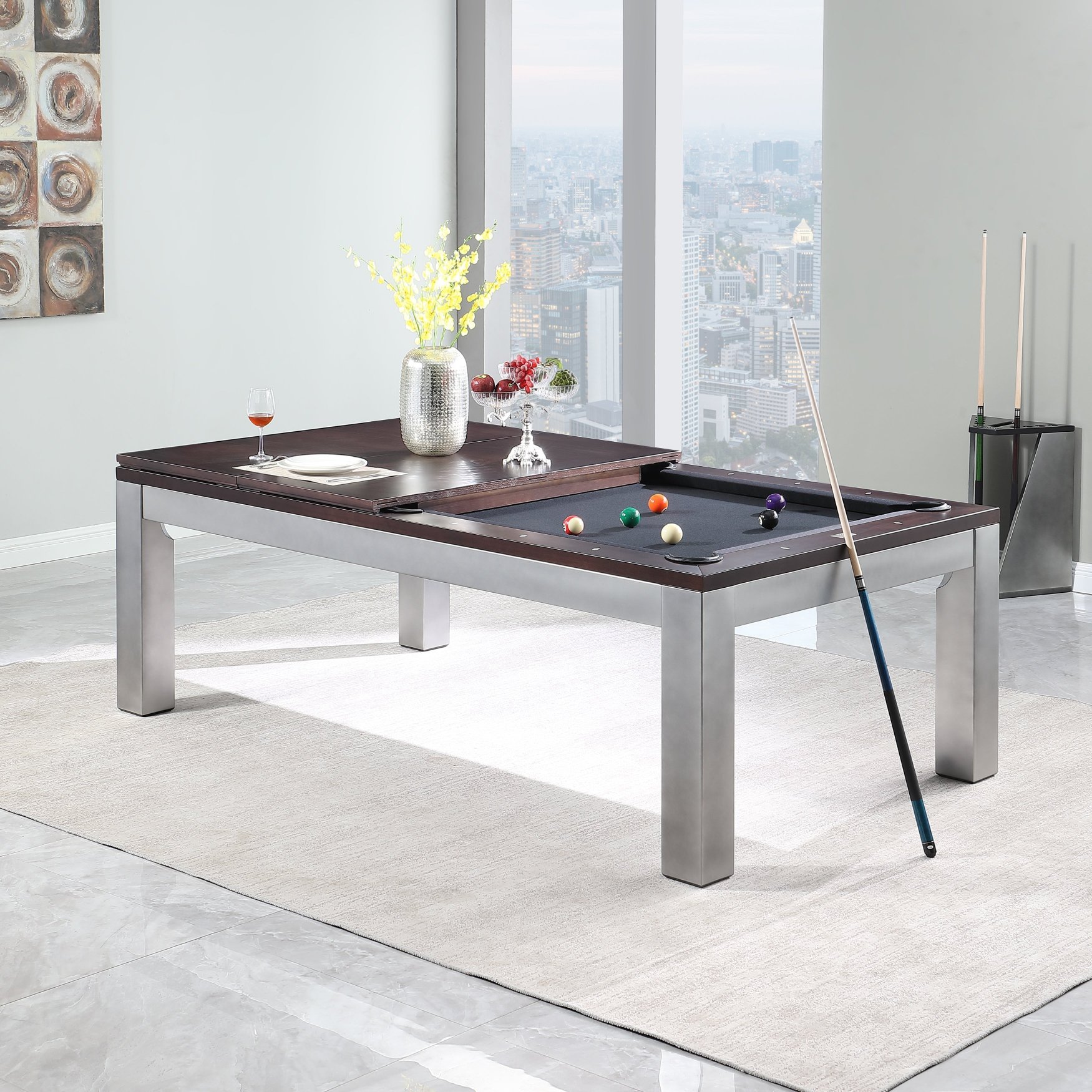 The Monaco slate pool table with dining top is part of the Fairfield Collection of game tables by Playcraft. The contemporary design and sleek, gloss Black on Silver finish will make the Monaco stand out in any game room.