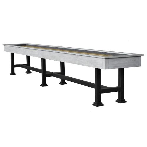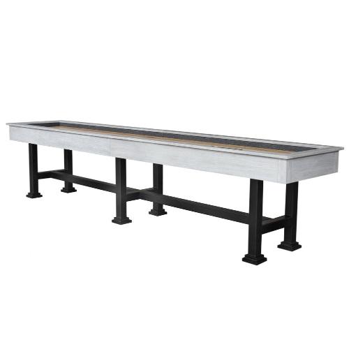 The Santa Fe shuffleboards are part of the pro-series Fairfield Collection of game tables by Playcraft. The Santa Fe’s rugged steel X legs combine with distressed hardwood stained in a rich Cocoa Bean to complete the popular rustic industrial design style and sure to be make a statement in your game room.