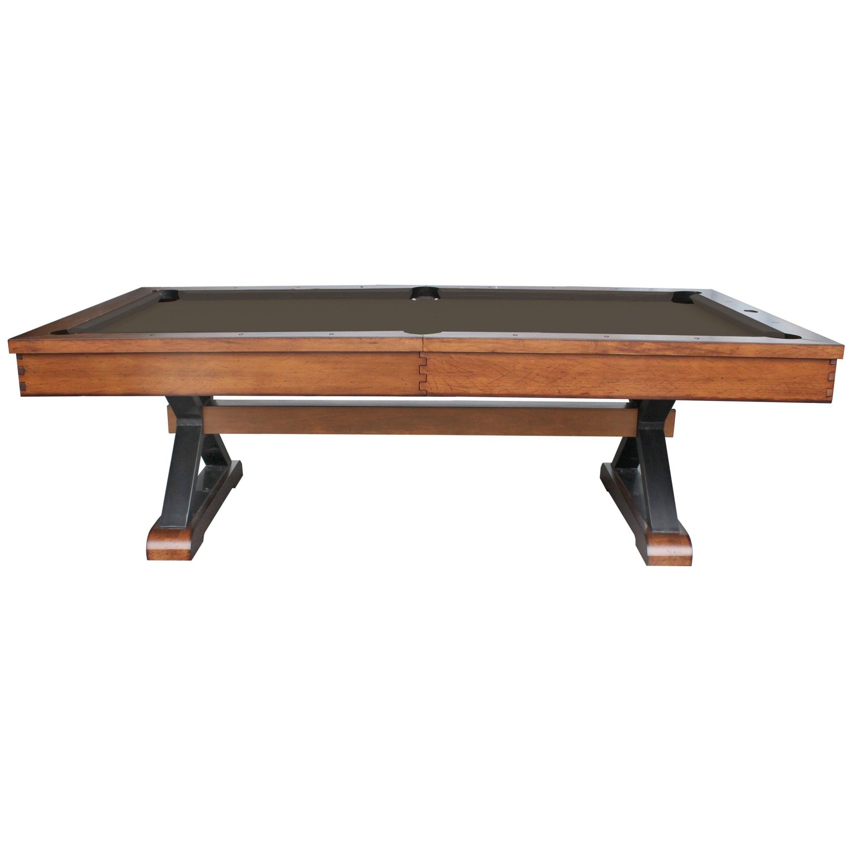Part of the new Fairfield collection, the St. Lawrence pool table is helping to redefine expectations. Made from select hardwoods, precision machined components and finely honed slate, the St. Lawrence is engineered for a quality assembly and a lifetime of reliable play. All components assemble via machined bolts and inserts. K-66 canvas backed high performance 100pct gum rubber rails are used for the best available rebound performance. Available in chestnut or espresso, both stains are hand applied for a beautiful finish. Precision carvings of table details match the available companion shuffleboard tables and create the opportunity for a beautifully matched game room.