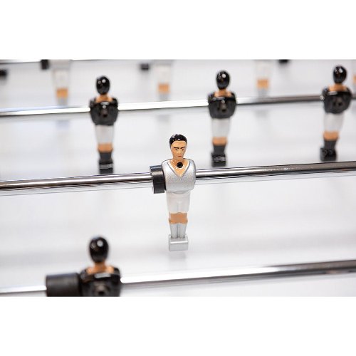The foosball table’s white Gerflex linoleum mat combines smooth movement with a grippy texture, facilitating controlled gameplay. It encourages precise passing and strategic shots, mimicking the real spirit of soccer.
