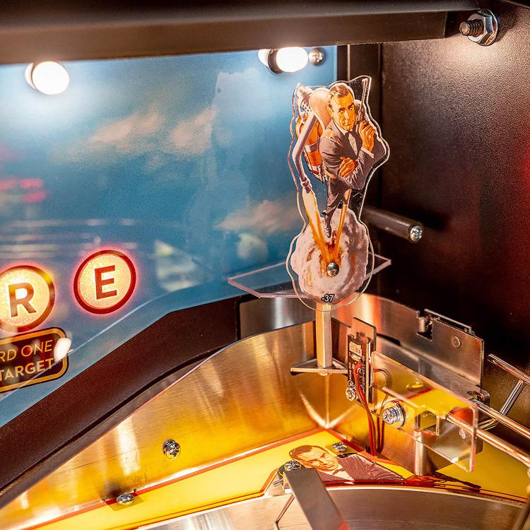 - Interactive SPECTRE “Bird One” custom sculpted spring-loaded rocket that reacts to hits by the pinballs