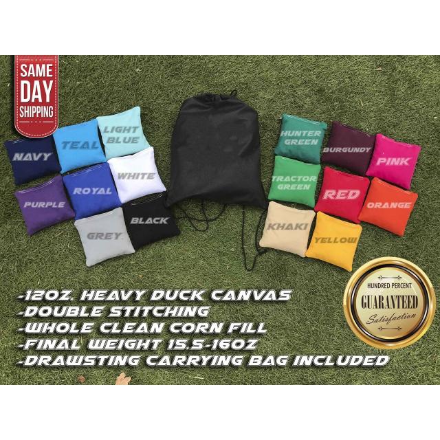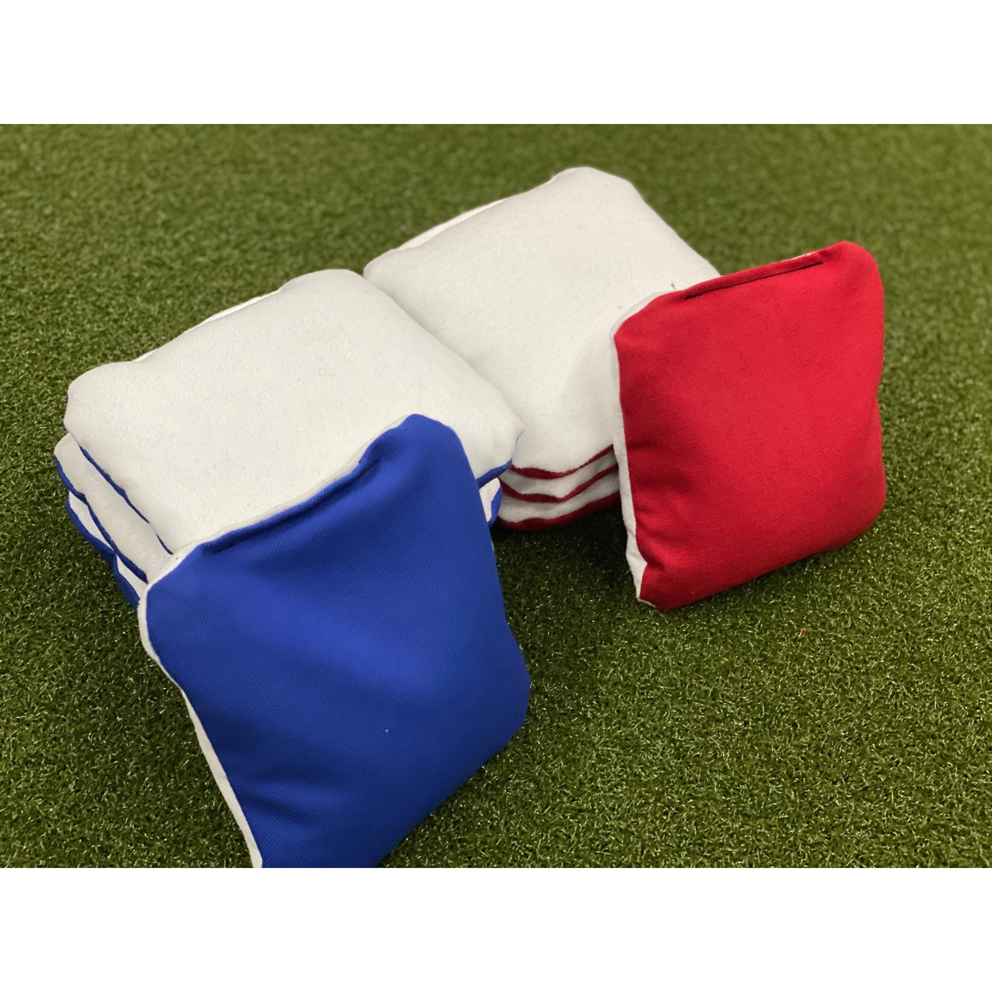 8 half colored canvas, half suede premium Plastic PELLET cornhole toss bags.