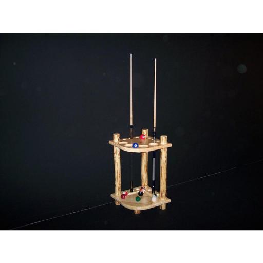 The pine log, klondike log or barnwood cue racks will go with any lodge, rustic or western pool table.  In the pine log, klondike and barnwood there are corner cue racks, standard floor cue racks, framed wall, and 2 piece wall cue racks available.  We also carry matching floor and corner cue racks in the Red Cedar and Ironwood style. All of our corner and standard floor cue racks have four drink holders with cork insert, ball storage, chalk storage and storage for up to six cue sticks. If any of these cue racks don’t fit your needs, a custom cue rack can be made just for you.