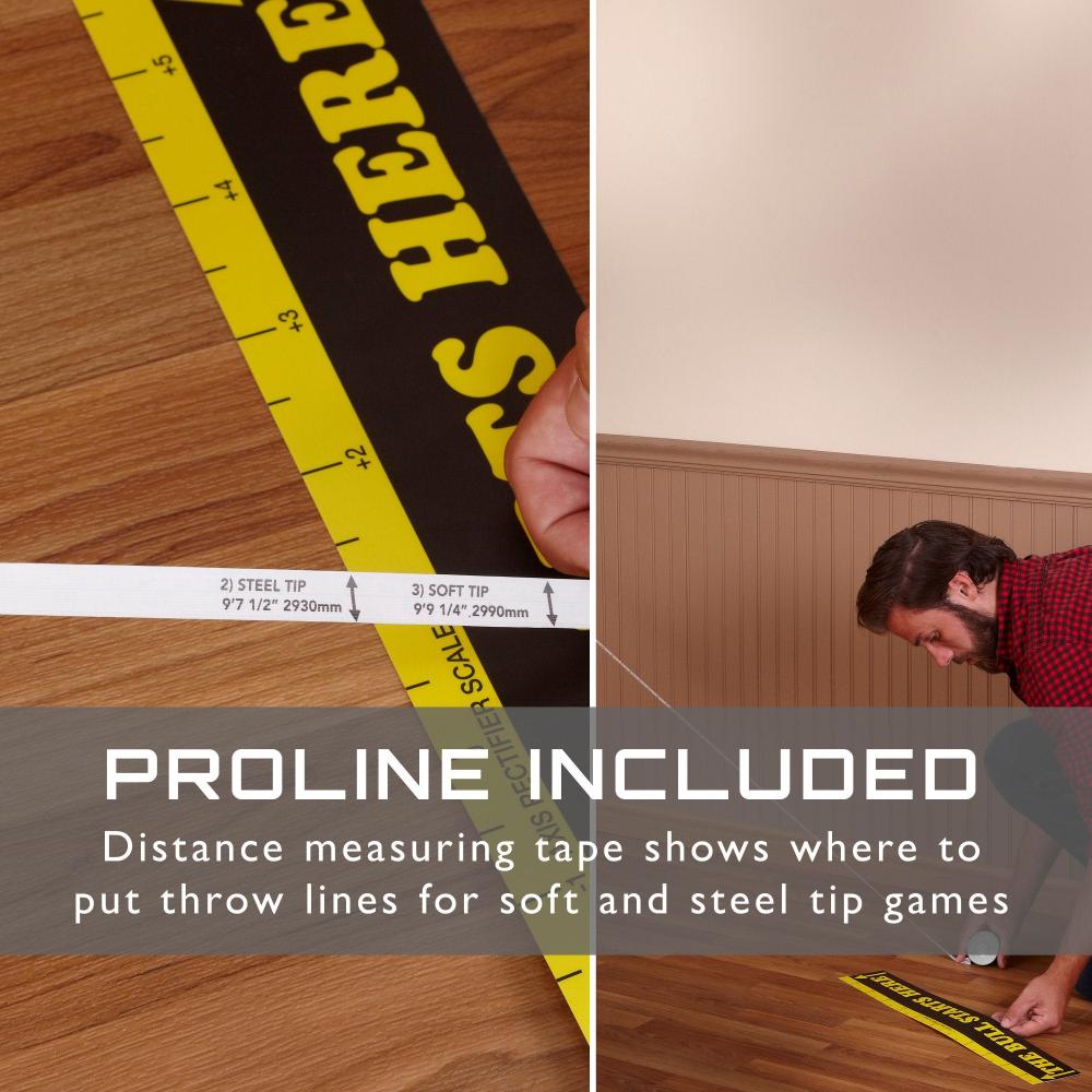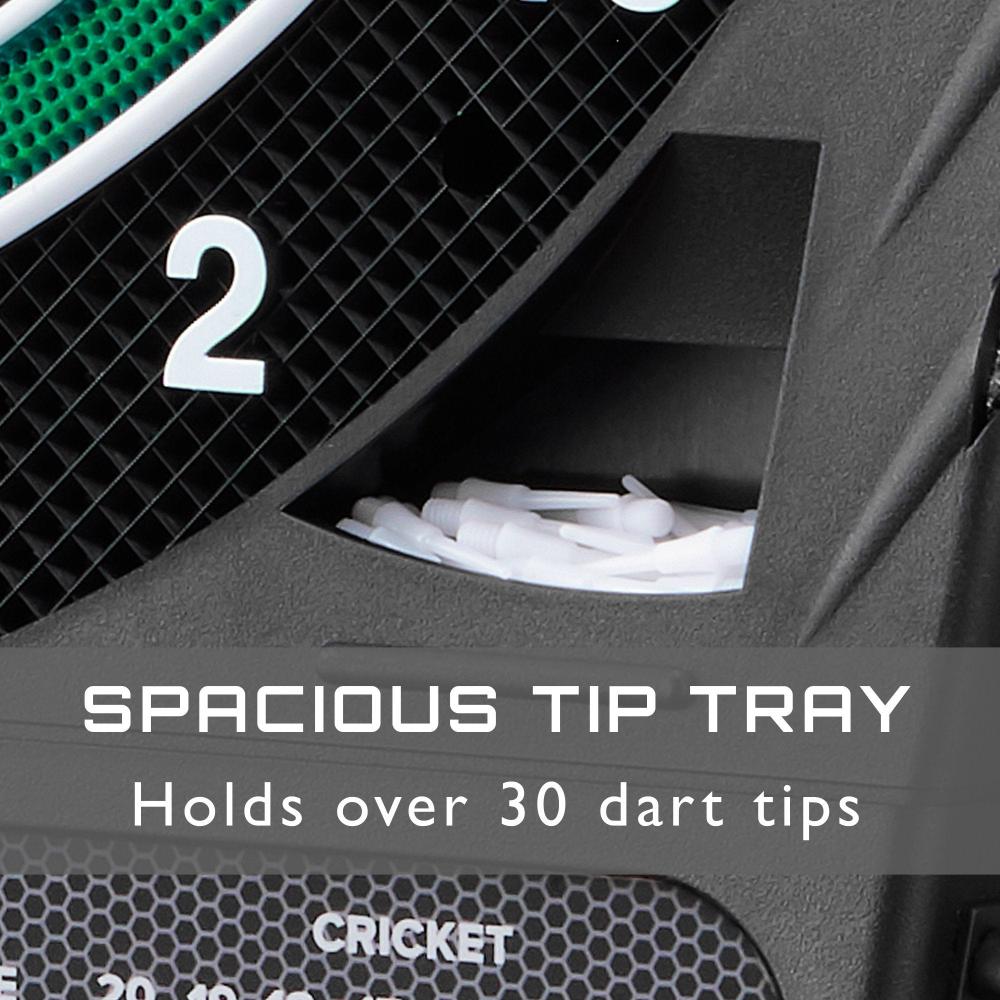 - Included mounting hardware utilizes front-facing mounting holes for quick setup, while a dartboard mounting bracket comes preinstalled.